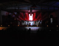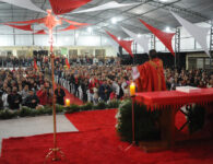 Além do ambiente todo ornamentado em vermelho, marcado com os sete dons do Espírito Santo, a Santa Missa contou também com a encenação da descida do Espírito Santo sobre Maria e os apóstolos.