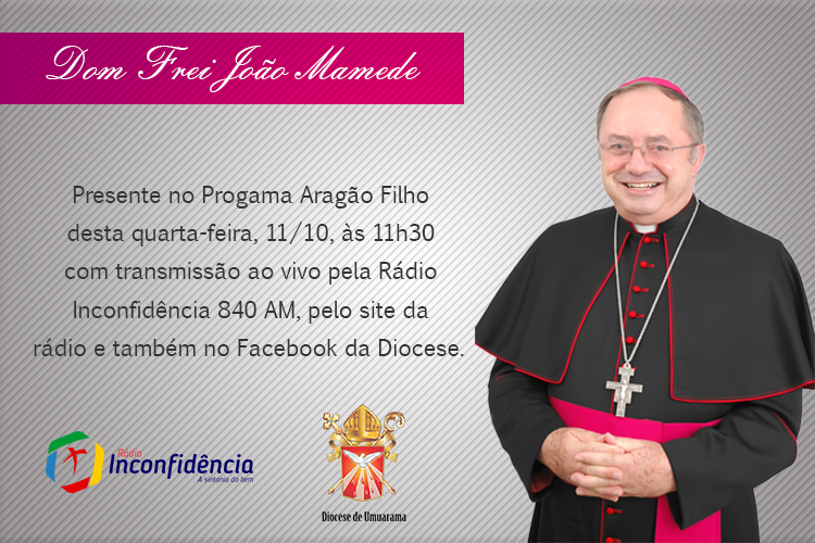 Na manha desta quarta-feira, 11, Dom João Mamede, nosso Bispo Diocesano estará no programa do Aragão Filho para uma entrevista do seu período de recuperação e superação.