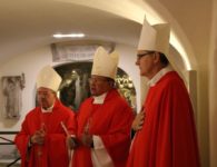 A Visita Ad Limina Apostolorum do episcopado paranaense entrou na segunda semana de atividades, com o compromisso mais esperado pelos bispos: a audiência com o Santo Padre, o Papa Francisco. No início da manhã dessa segunda-feira, 24 de fevereiro, os bispos celebraram a missa na cripta da Basílica de São Pedro, junto ao túmulo do Apóstolo. Dom Antônio Wagner da Silva, bispo de Guarapuava, foi o presidente da celebração, ladeado por Dom Bruno Elizeu Versari, bispo de Campo Mourão, e Dom João Mamede Filho, bispo de Umuarama.