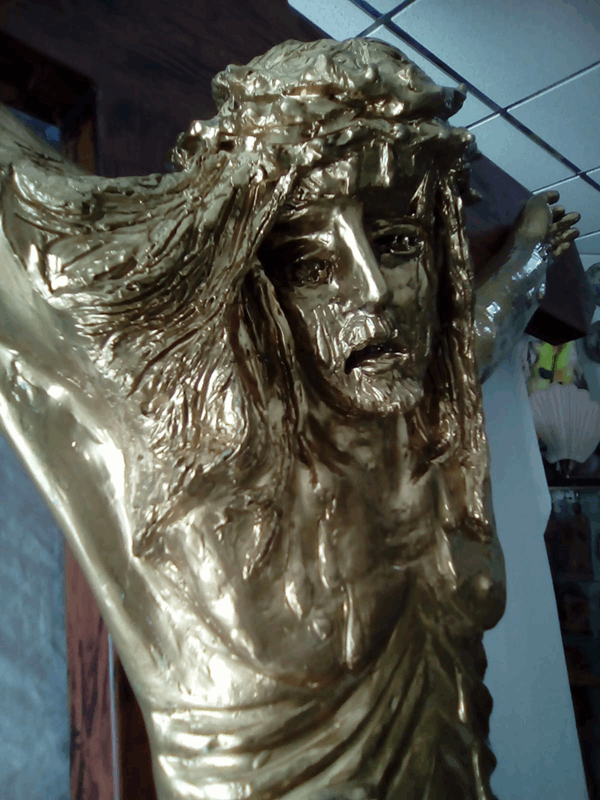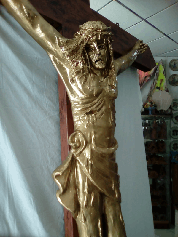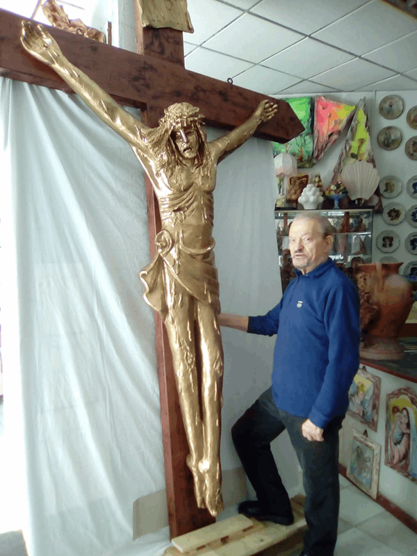 Uma arte de exposição para a cidade de Nove, graças a uma nova obra do artista Lino Agnini. Recentemente Agnini, originário de Puglia, mas que mudou-se para Nove há anos, criou seu novo trabalho. A obra é de notável tamanho. É um crucifixo das dimensões de 4,5 metros de altura e 2 metros de largura. O corpo de Cristo tem uma dimensão de 2,10 metros de altura e uma largura dos braços de 1, 5 metros. O trabalho foi feito de fibra de vidro e decorado em ouro, substâncias especiais, tais como que Lino Agnini até agora havia feito outras vezes, mais acostumados a bronze e material cerâmico local. ‘A fibra de vidro oferece grande versatilidade, mas também é um material leve e ao mesmo tempo sólido – spíega Agnini – O procedimento utilizado foi o mesmo de uma escultura em bronze’. A grande escultura envolveu alguns meses de trabalho, na oficina de Novati, na Via Molini, comprimida pelo design da caixa de madeira da história. O crucifixo foi uma encomenta do Brasil, pela diocese de Umuarama, do estado de Paraná, destinado a embelezar a Igreja Matriz da Paróquia da Sagrada Família de Cianorte. Especifico também o instante e a atitude que Lino Agnini quis dar à obra: “É Jesus Cristo no momento do diálogo com sua mãe Maria, quando pronuncia as palavras: ‘Eis o teu Filho’. Eu queria representar um derramamento de sangue duplo – o derramamento de sangue duplo – explica o artista de Nove – para enfatizar o grande momento de dor e sofrimento.”