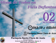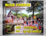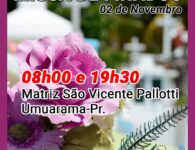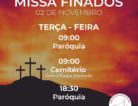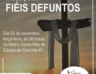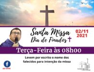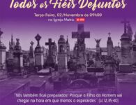 Terça-feira, 02 de novembro, dia em que a Igreja celebra o dia dos Fiéis Defuntos e recolhe-se em oração pelos seus filhos que já partiram desta vida. Para os cristãos, não se trata de um simples dia de saudade, mas de oração pelos fiéis de Cristo que já partiram para a Casa do Pai na firme esperança da ressurreição. Haverá as celebrações nas diversas Paróquias da Diocese.