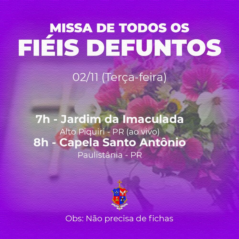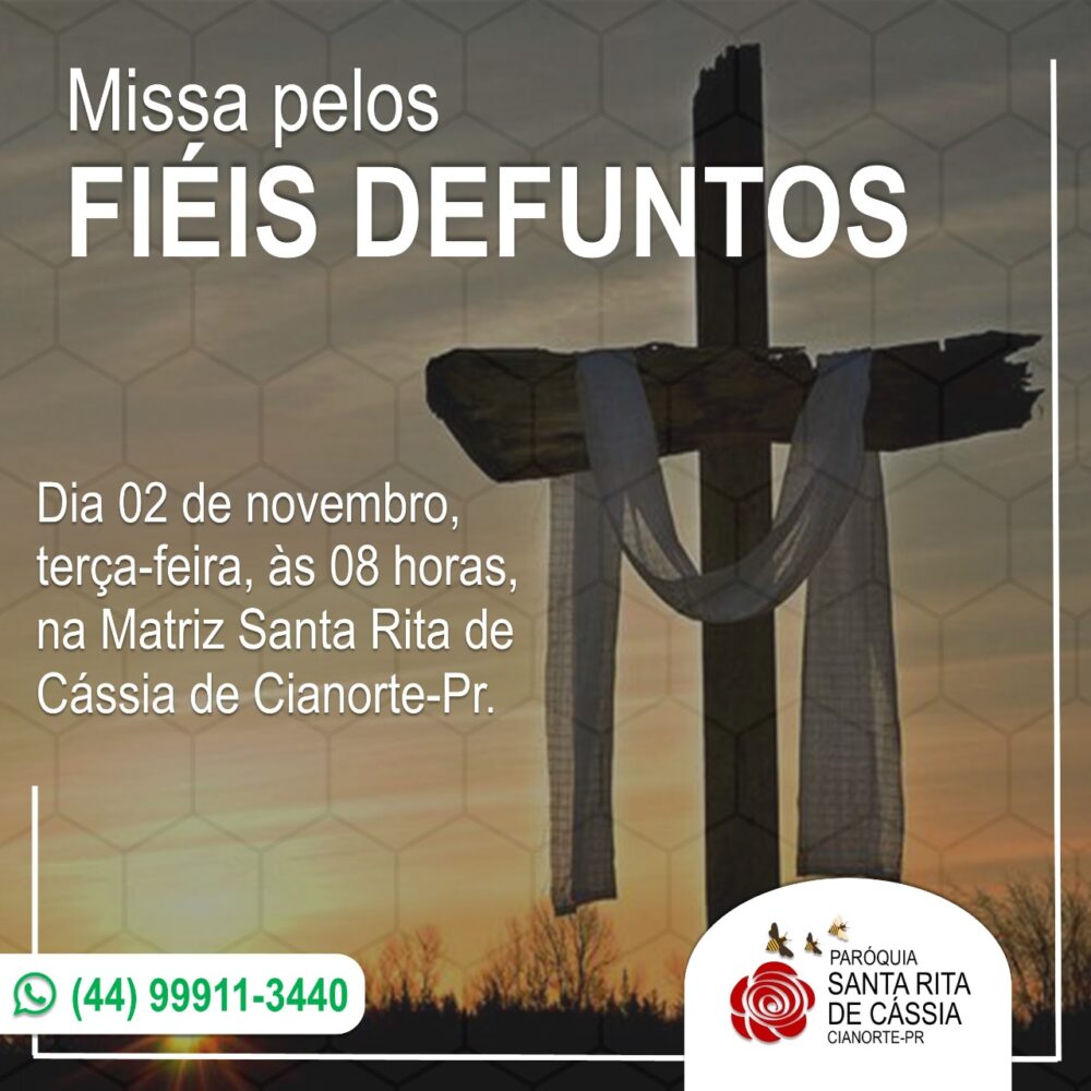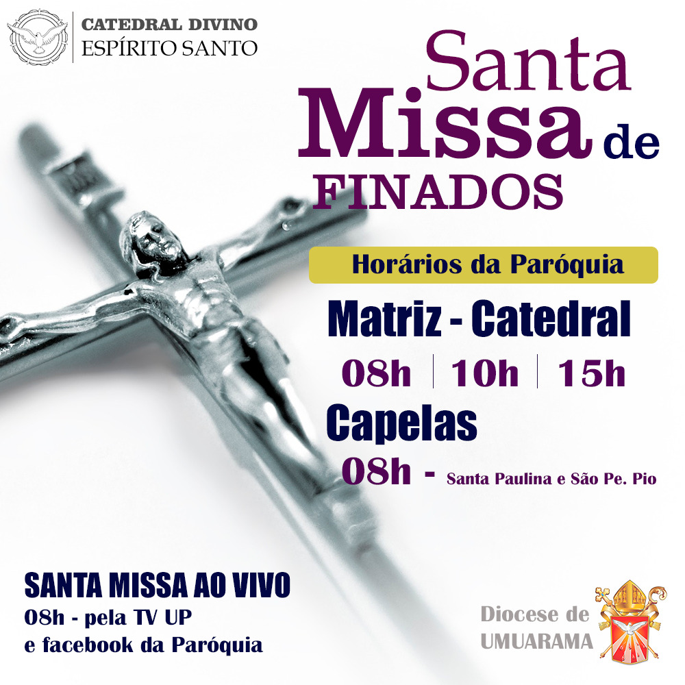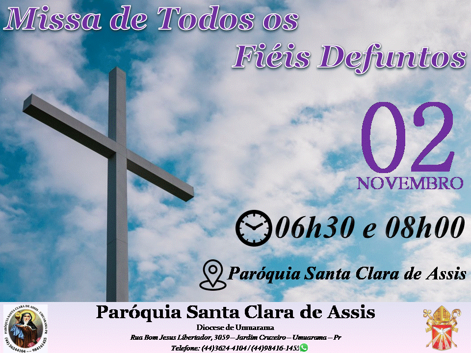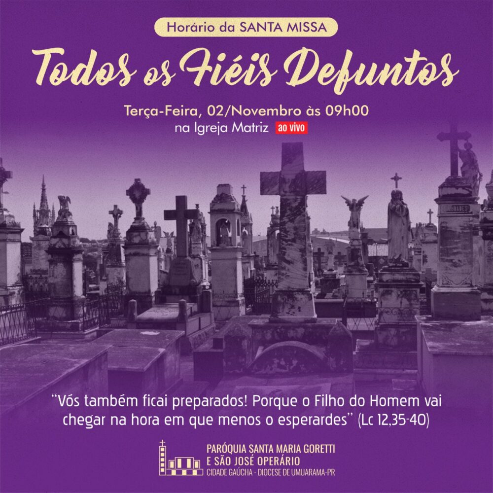 Terça-feira, 02 de novembro, dia em que a Igreja celebra o dia dos Fiéis Defuntos e recolhe-se em oração pelos seus filhos que já partiram desta vida. Para os cristãos, não se trata de um simples dia de saudade, mas de oração pelos fiéis de Cristo que já partiram para a Casa do Pai na firme esperança da ressurreição. Haverá as celebrações nas diversas Paróquias da Diocese.