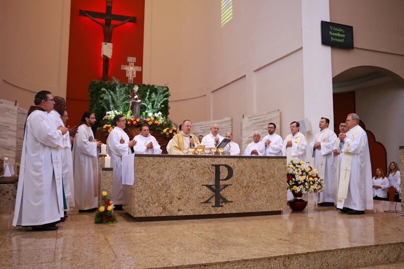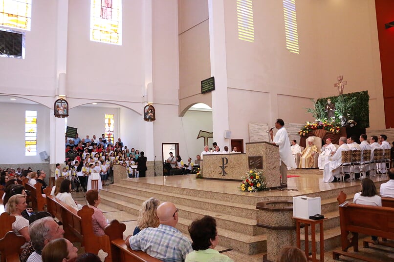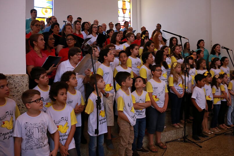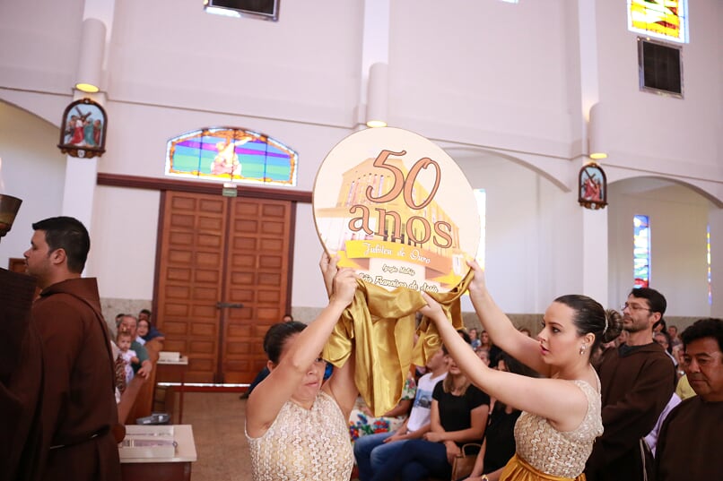 A celebração foi muito bem preparada e alguns dos cânticos foram especialmente escritos para a festa do Jubileu de 50 anos da Paróquia, cantados durante toda a novena e também hoje, num coro que reuniu diversos grupos da paróquia.