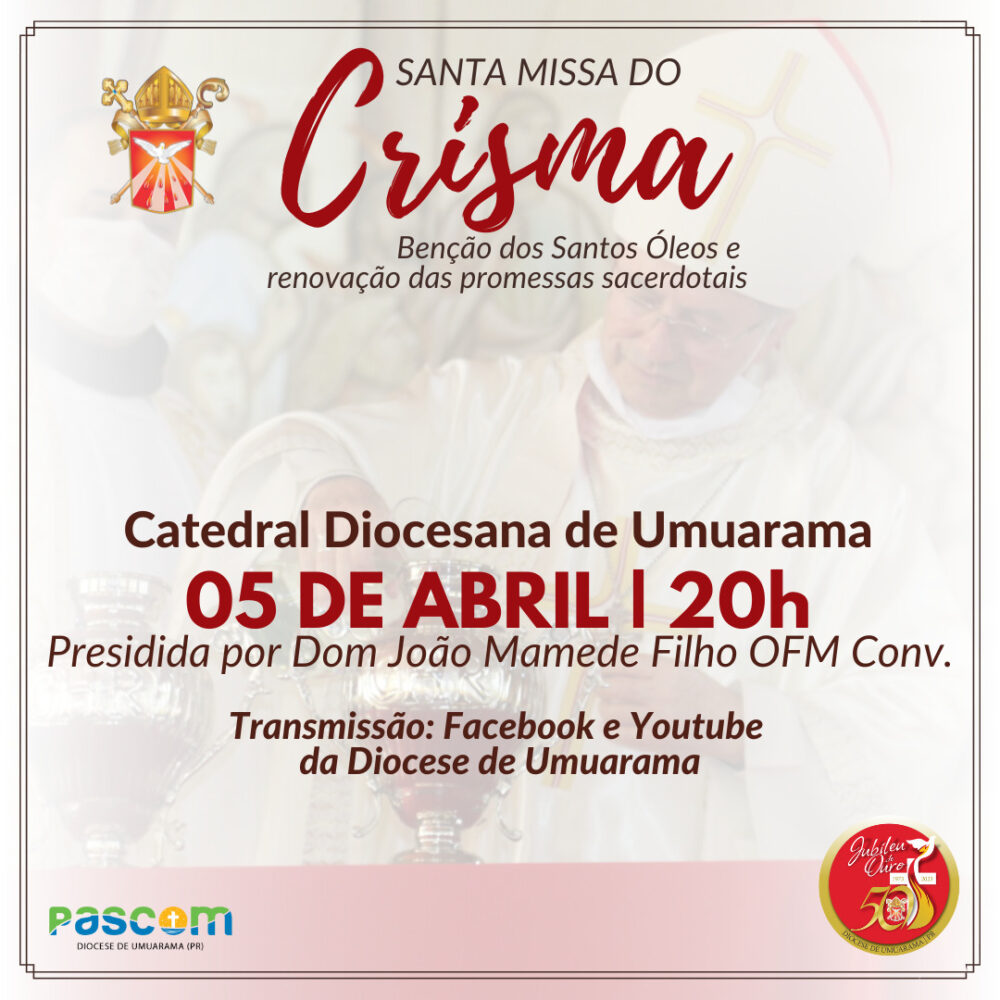 A missa será transmitida pelas redes sociais da Diocese e da Catedral de Umuarama-PR. Nessa mesma celebração, os padres renovarão os seus compromissos sacerdotais junto ao Bispo. Esse gesto faz memória à instituição do Sacerdócio.
