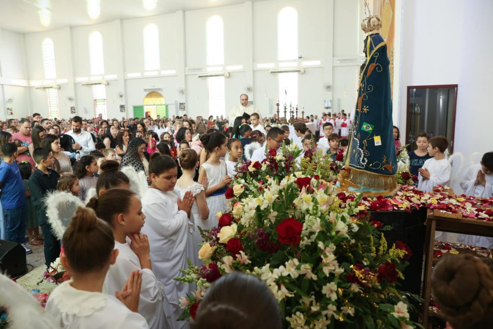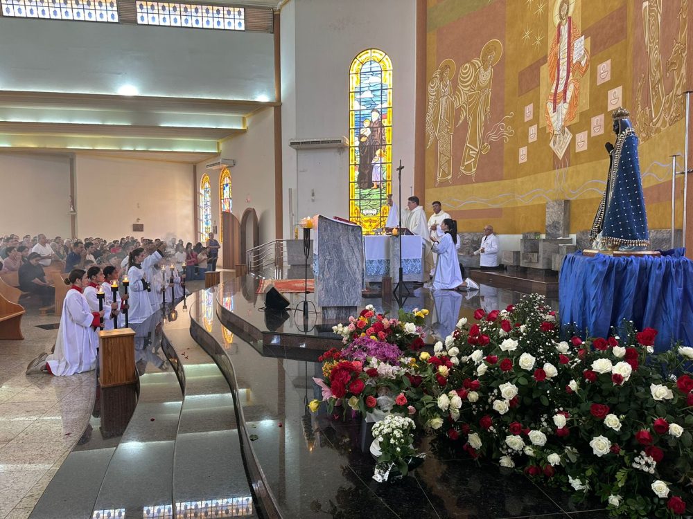 O Bispo Diocesano, Dom Frei João Mamede Filho, OFMConv, Presidiu a celebração na Paróquia Nossa Senhora Aparecida de Umuarama e durante sua homília disse que Maria, a Rainha vestida de ouro de Ofir. “É Aquela que se cobre de todas as virtudes que mais elevam o ser humano. Ela está sempre atenta as nossas necessidades, sabe o que nós precisamos e como podemos ser felizes, como ela foi. Fazei ó Deus que o povo brasileiro vivendo na união e na justiça, cheguem um dia a pátria definitiva, que não é da nossa competência”.