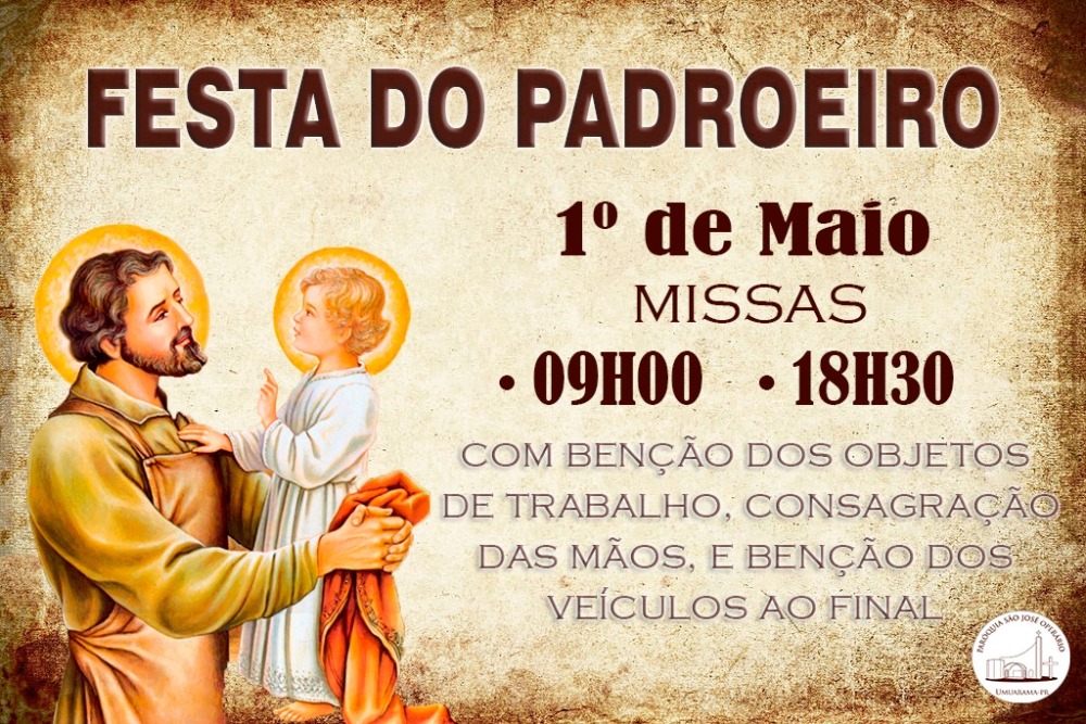 No dia 01 de maio, dia do trabalhador e também dia de São José Operário, A Paróquia São José Operário, de Umuarama, celebrará duas missas com benção dos objetos de trabalho e ao final de cada uma, benção dos carros na rua da Igreja, uma celebração será às 09h e a outra às 18h30.