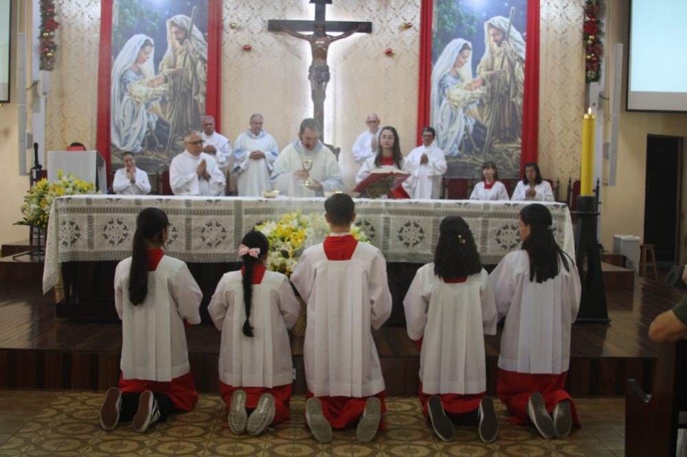 Na última terça e quarta-feira (31 de dezembro e 1º de janeiro), foi celebrada a Santa Missa da Solenidade de Santa Maria, Mãe de Deus. Essa sagrada solenidade, realizada anualmente no dia 1º de janeiro, homenageia Santa Maria, que respondeu “sim” ao chamado de Deus, tornando-se a mãe do Filho, que se fez homem para salvar a humanidade.