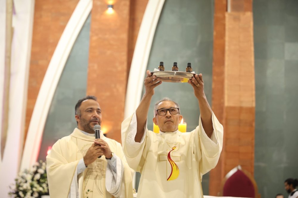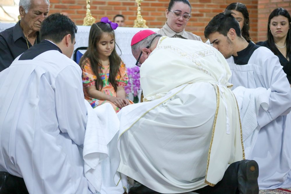 A Quinta-feira Santa marca o início do Tríduo Pascal. Nela, celebra-se a Instituição da Eucaristia e o rito do lava-pés. Cada paróquia da diocese realizou sua celebração, e o Bispo presidiu a Santa Missa na Catedral de Umuarama.
