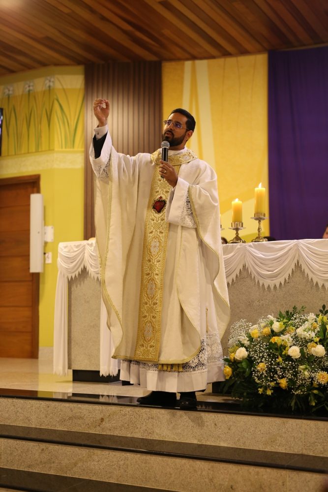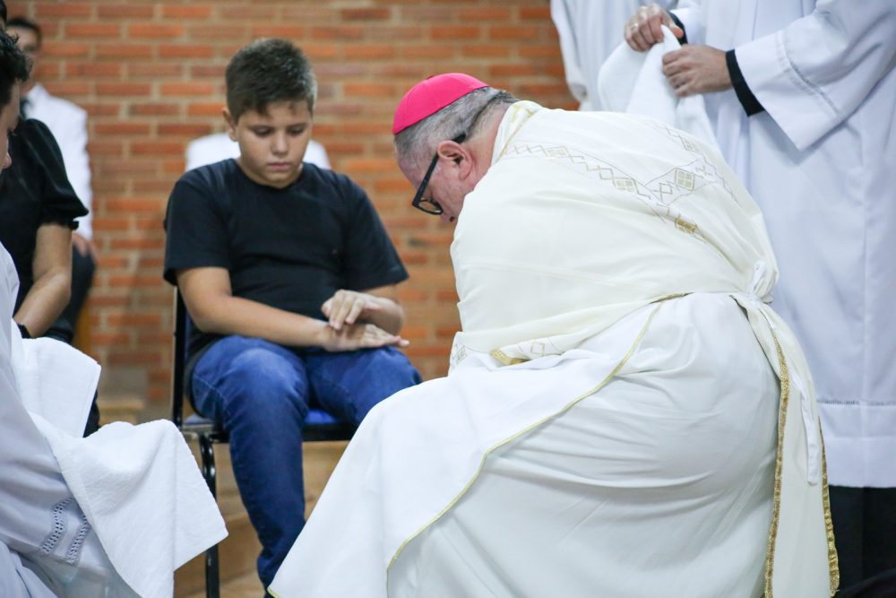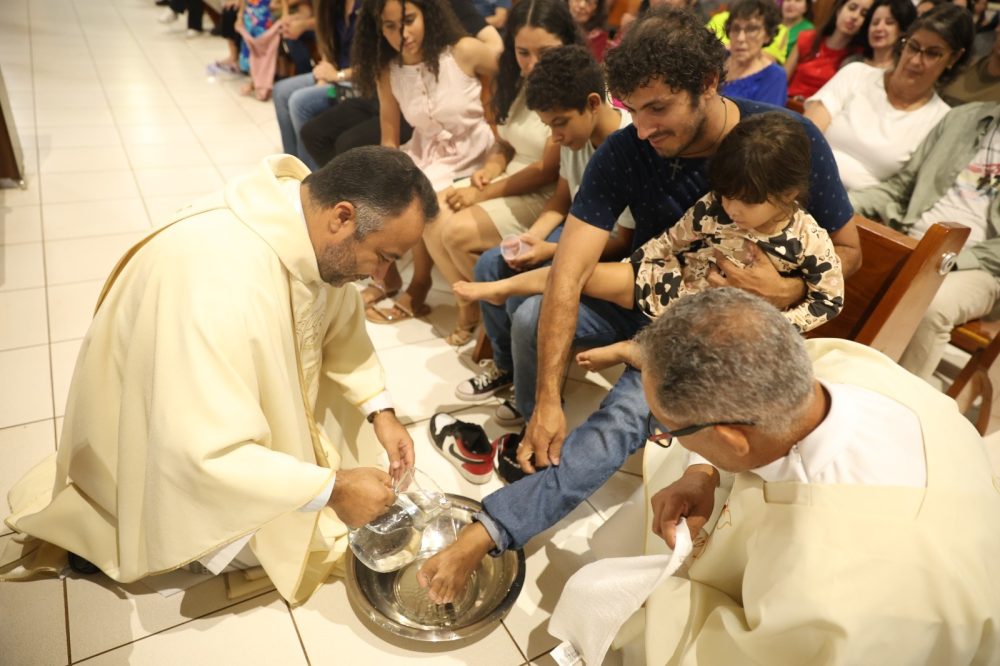O Monsenhor Claudir Martineli, Administrador Paroquial da Paróquia Sagrado Coração de Jesus, explicou que o lava-pés de Jesus é a síntese de toda a sua vida: paixão, morte e ressurreição. “Ela é perpétua, porque Ele continua se oferecendo nos altares das igrejas. Ele se inclinou diante dos apóstolos, lavou os pés de Pedro, lavou os pés de João, lavou os pés de Judas. E pediu que nós também repetíssemos este sinal, consagrando-nos como membros de Cristo Jesus.”