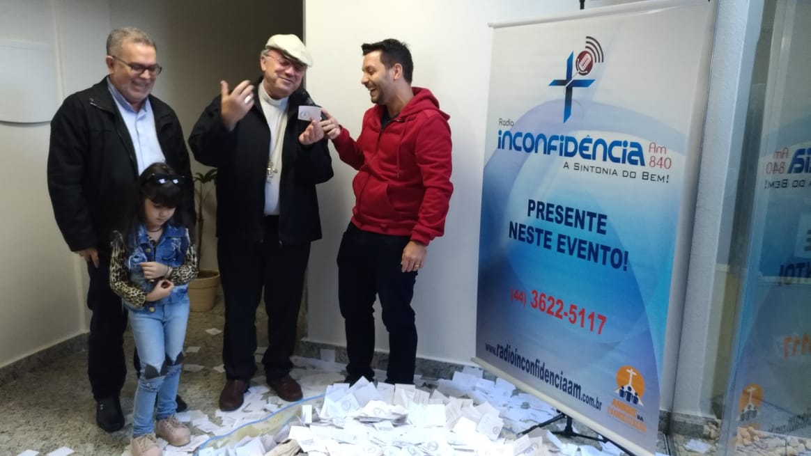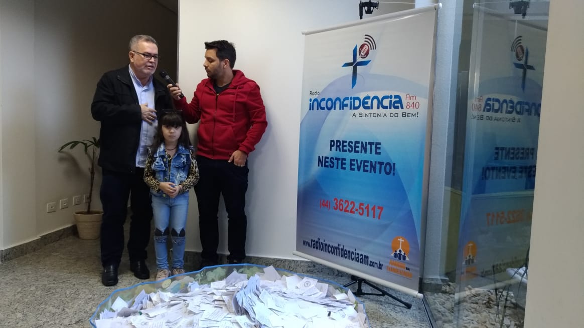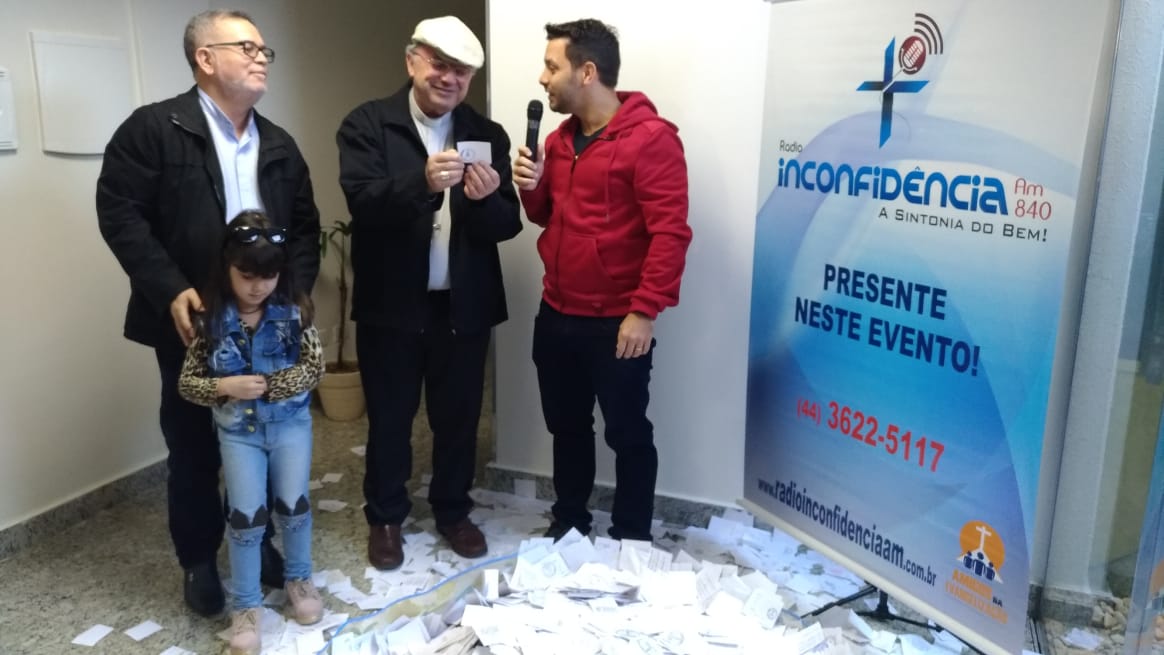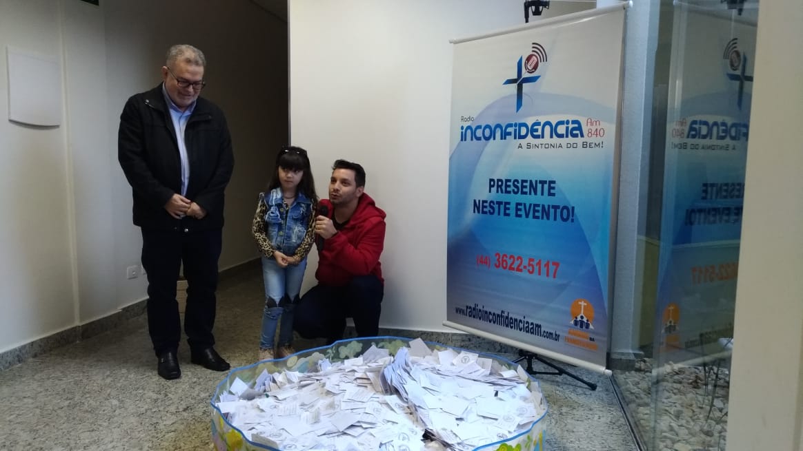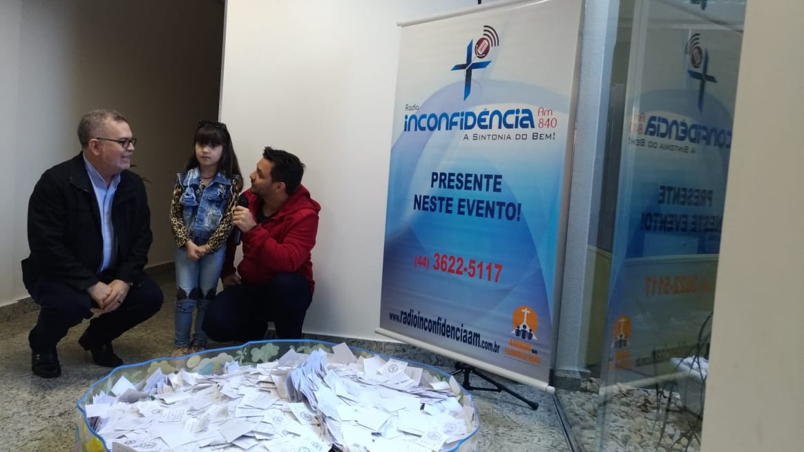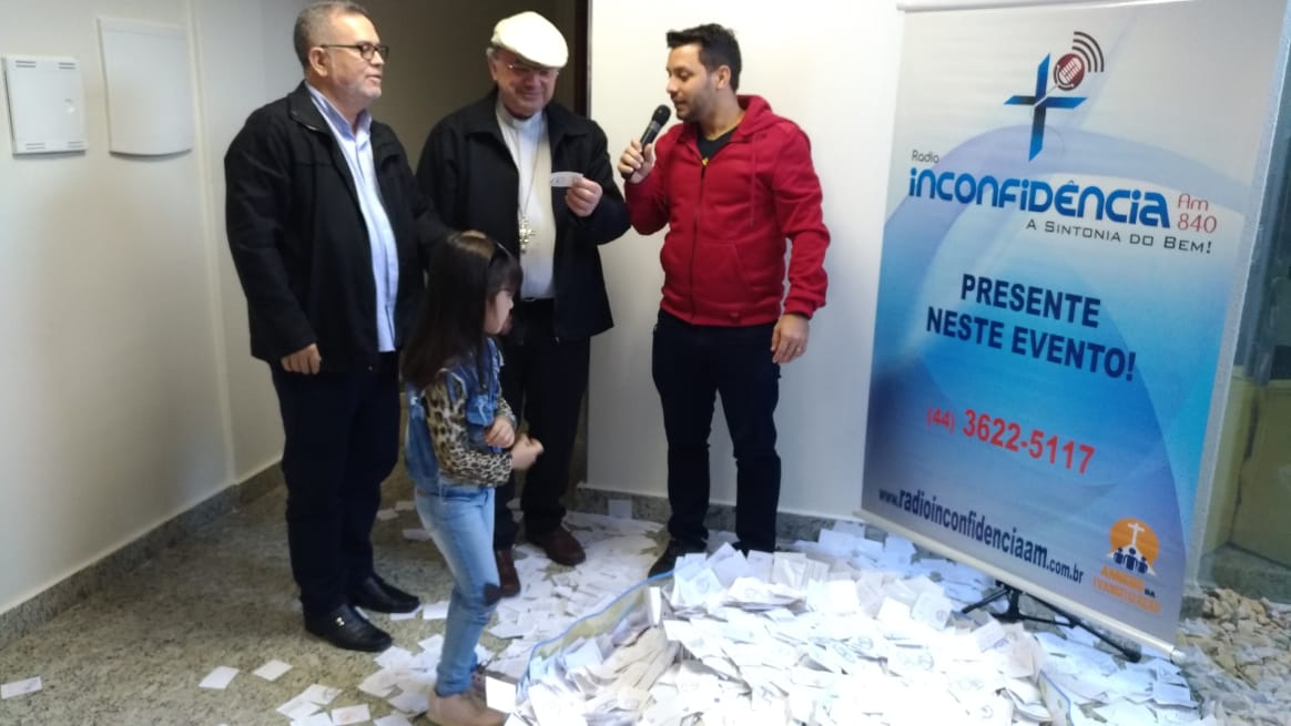Aconteceu no domingo (09), o sorteio da Ação Entre Amigos das Rádios da Diocese de Umuarama-PR, o sorteio foi realizado na Rádio Inconfidência (em Umuarama). Com a presença do Bispo Dom Frei João Mamede Filho, OFM Conv., do diretor da Rádio Padre Carlos Alberto de Figueiredo, funcionários da rádio, membros da sociedade e funcionários da Mitra Diocesana, a pequena Isadora Maria (5) pegou um dos papéis. A Paróquia Nossa Senhora Aparecida de Douradina foi quem levou os 40mil reais.